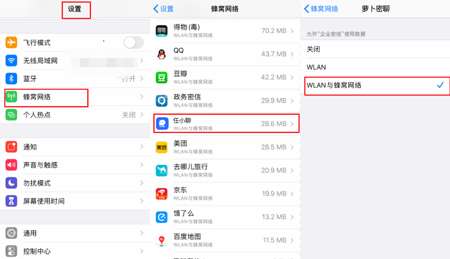 - 查看是否允许任小聊使用数据网络;